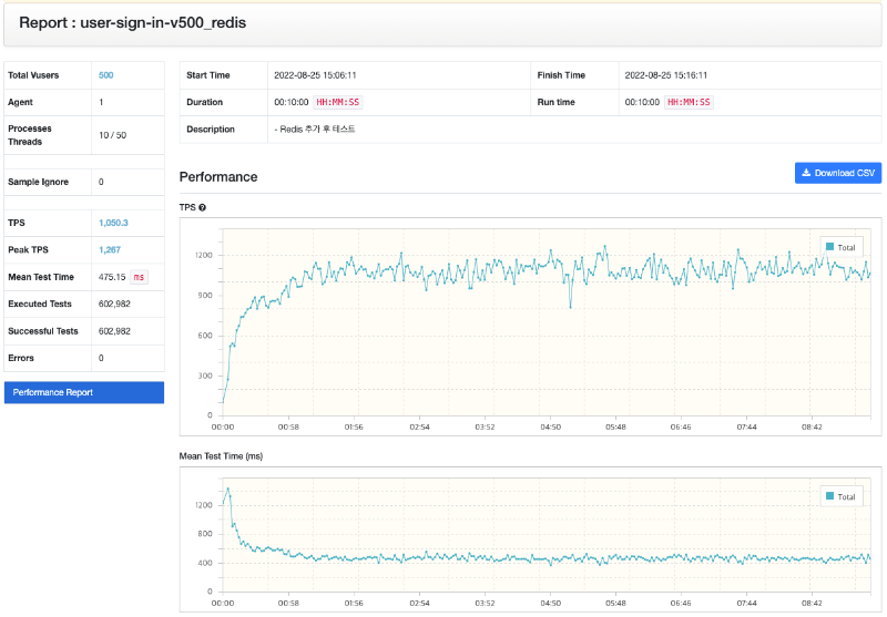 예상처럼 Redis를 사용할 경우 통신이 필요하기 때문에 기존의 세션 처리보다는 성능이 저하되는 것을 관찰할 수 있었습니다. 진행한 실험은 많은 유저들을 로그인하는 과정을 진행하는 것이므로 Database와의 통신도 필요합니다.