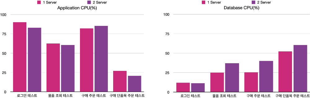 Scale-Out을 진행한 뒤 테스트를 해보며 얻은 병목 지점의 실마리는 Database에서 병목이 생기는 부분으로 인해 Scale-Out으로 처리할 수 있는 한계가 생긴다는 부분입니다. 물품 조회는 페이징 쿼리, 단일 주문 구매의 경우 Database Lock(UPDATE)으로 인해 대기하는 시간이 존재하므로 기존 Application, Database 구조에서 새로운 해결책의 필요성을 볼 수 있었습니다.