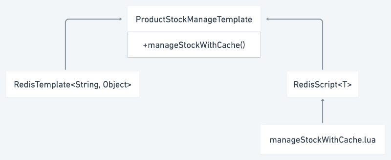 Spring에서 Resource를 불러오듯 Script 또한 ClassPath를 통해 불러와 등록할 수 있었습니다. 그리고 Redis와의 재고만 처리하는 하나의 Template으로 Component로 관리할 수 있도록 `ProductStockManageTemplate`을 정의했습니다.