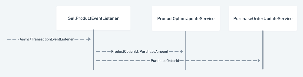 구매 주문이 수행되는 과정을 Sequence diagram 중 Listener 부분만 나타내면 다음과 같습니다.